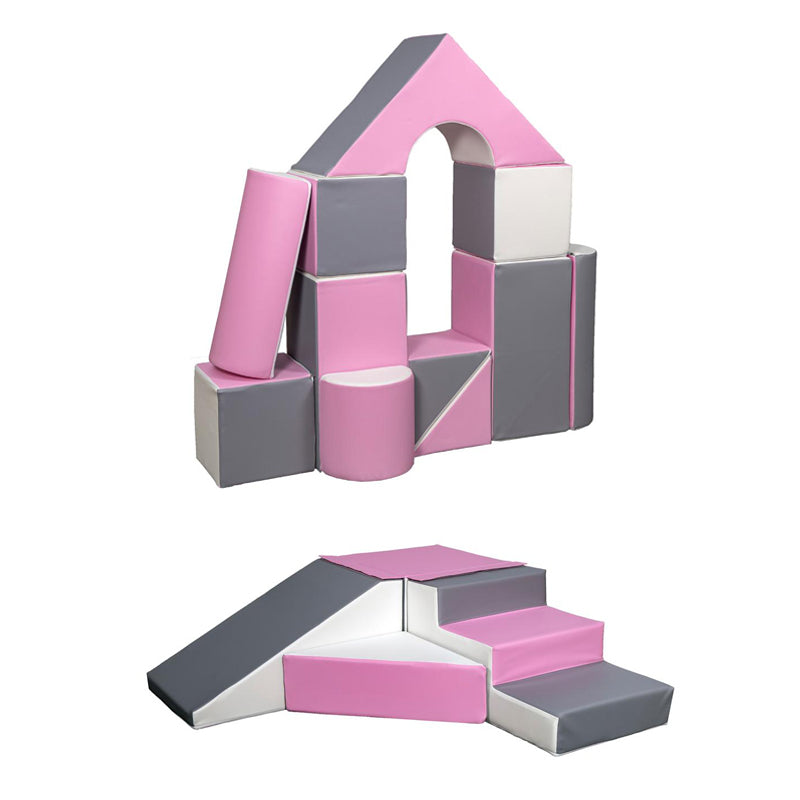 BUNDLE UP AND SAVE!! This bundle includes the Pink, Grey & White Castle Building Block Set and Slide & Step Soft Play Set.
