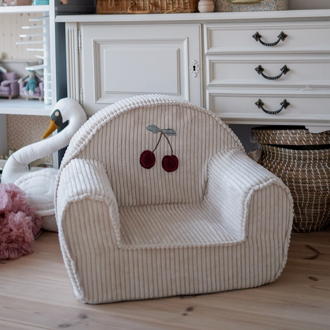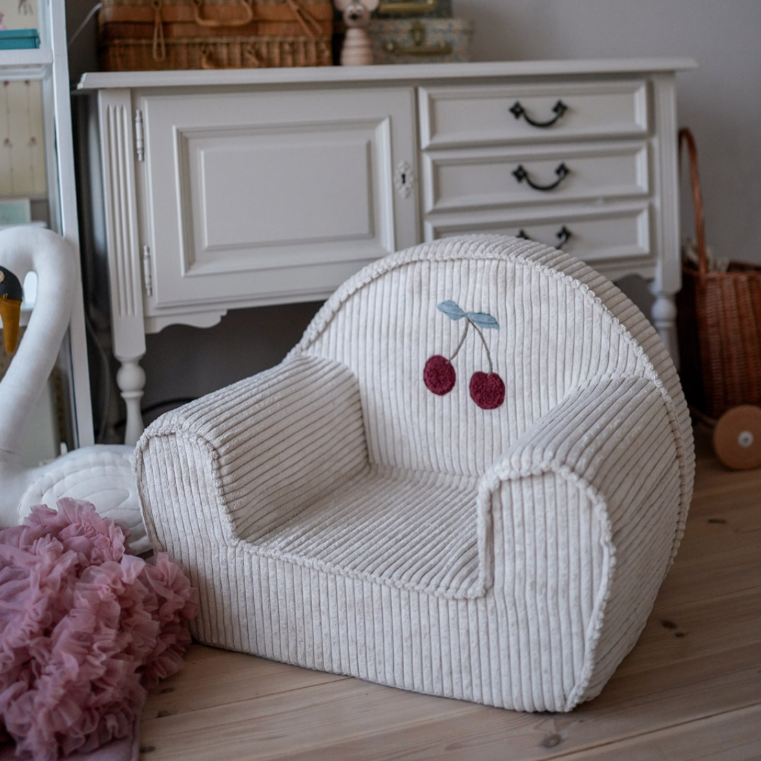 Cherry Embroidered Chunky Corduroy Toddler Armchair, Beige