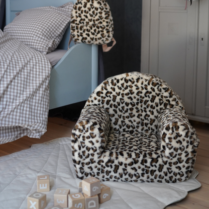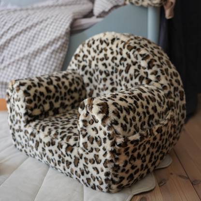 Beautiful chair that your little one will love! Soft and comfortable, perfect for 9 months and up. Made from high-quality foam with plush fabric cover in chic leopard print pattern. On the side of the seat there is a pocket for small items.